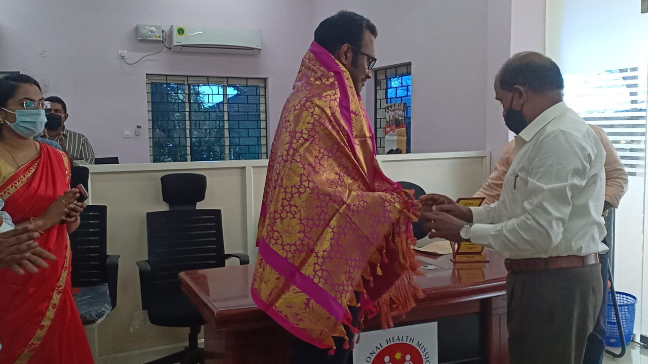 We have felicitated Dr. Arun P V, District Programme Manager, National Health Mission, Thycaud, Thiruvananthapuram on the National Doctors' Day in recognition of his tireless service to defend the spread of Covid-19 virus in the district on 1st July, 2020 at 11 am at Thiruvananthapuram District Office of National Health Mission.